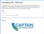 Prompting Pre-Workshop Knowledge Assessment When conducting the Prompting workshop virtually, participants are sent a link to complete the pre-workshop knowledge assessment beforehand either via email or during the workshop using the chat feature. |