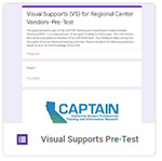 Visual Supports Pre-Workshop Knowledge Assessment When conducting the Visual Supports workshop virtually, participants are sent a link to complete the pre-workshop knowledge assessment beforehand either via email or during the workshop using the chat feature. |